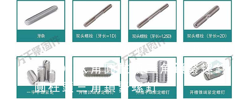 最常見的是六角頭螺栓 國標GB5783 GB5782 德標Din933 Din931 (8.8級粗牙外六角螺栓)圓柱頭內(nèi)六角螺釘 國標GB70.1 德標Din912 還有很多像什么盤頭十字螺釘 沉頭十字螺釘 開槽盤頭螺釘 開槽沉頭螺釘?shù)鹊群芏喾N。 開槽滾花高頭螺釘 Slotted knurled thumb screws with collar 滾花高螺母 Knurled thumb nuts with collar 滾花薄螺母 Knurled thumb thin nuts 鎖緊墊圈 Sealing washers 軸用彈性墊圈 Retaining rings for shafts(external),