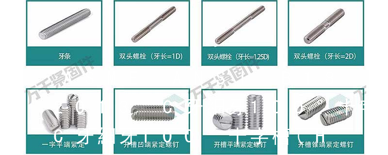 直徑.(外螺紋用d、內螺紋用D表示)小徑:與外螺紋牙底或內螺紋牙頂相重合的假想圓柱面的直徑.(角標標上1)中徑:母線通過牙型上溝槽和凸起寬度相等的地方的假想圓柱的直徑.M48*1.5表示:公稱直徑為48mm,螺距為1.5mm,右旋的細牙普通 螺栓有:1、方頭螺栓,2、半圓頭方頸螺栓,3、十字槽盤頭螺釘,4、內六角沉頭螺釘,5、方螺母C級,6、蝶形螺母,7、六角頭螺栓,8、十字槽盤頭自攻螺釘。大小有M18、M6、M8、M16、M10、M12、M14、M20等型號。通常用