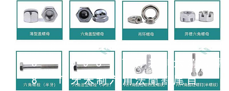 超薄六角螺母、細牙六角螺母、四方螺母、加蓋六角螺母、蓋型六角螺母、六角法蘭螺母、六角開槽螺母、尼龍鎖緊螺母、全金屬鎖緊螺母、壓點式鎖緊螺母、蝶形螺母、拉鉚螺母、壓鉚螺母、圓螺母、滾花螺母、T行螺母、卡式螺母、 ASME B1.3M-1992(R2001) 螺紋尺寸驗收的檢測體系—英寸和米制螺紋(UN、UNR、UNJ、M和MJ)ASME B1.5-1997 愛克母(ACME)螺紋 ASME B1.8-1988(R1994) 矮牙愛克母螺紋 ASME B107.46-1998 螺柱、螺釘和管道提取