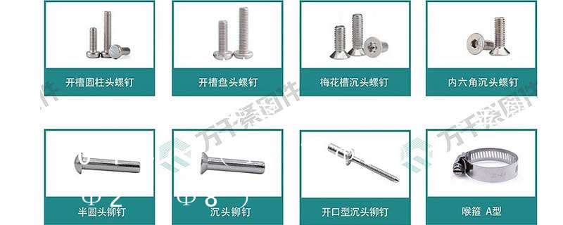 扁平頭、扁圓頭鉚釘: 主要用于金屬薄板或皮革、帆布、木料等非金屬材料的鉚接場合。 而大扁平頭鉚釘主要用于非金屬材料的鉚接場合。半空心鉚釘: 即在鉚釘的圓柱部分加工一沉空,主要用于隨載荷不大的鉚接場合。4.不銹鋼拉釘 平頭鉚釘用于隨一般載荷的鉚接場合。扁平頭、扁圓頭鉚釘主要用于金屬薄板或皮革、帆布、木料等非金屬材料的鉚接場合。大扁平頭鉚釘主要用于非金屬材料的鉚接場合。半空心鉚釘主要用于隨載荷不大的鉚接場合。無頭鉚釘主要用于非金屬